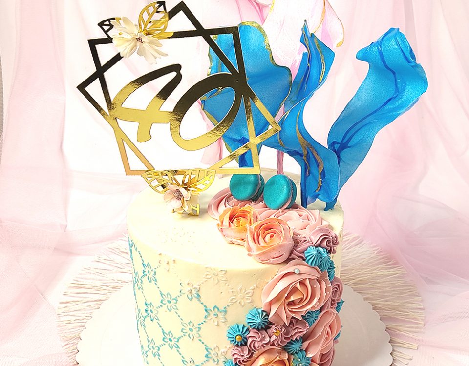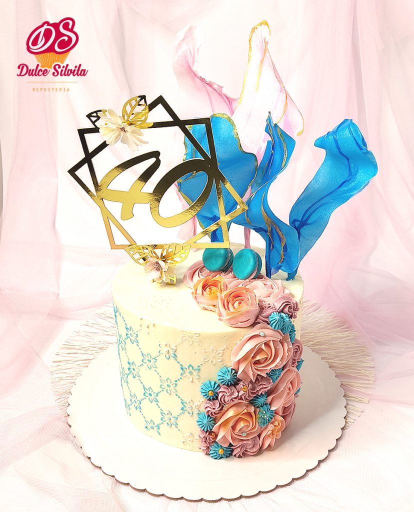 Tarta Comunión con rosas en azúcar