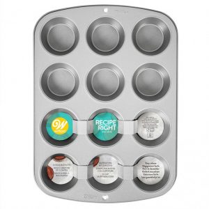 Bandeja de aluminio de alta calidad con 12 cavidades para hornear muffins, cupcakes o magdalenas.