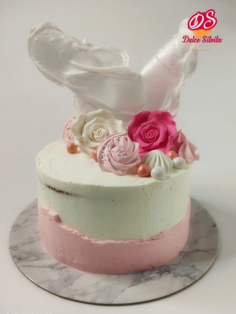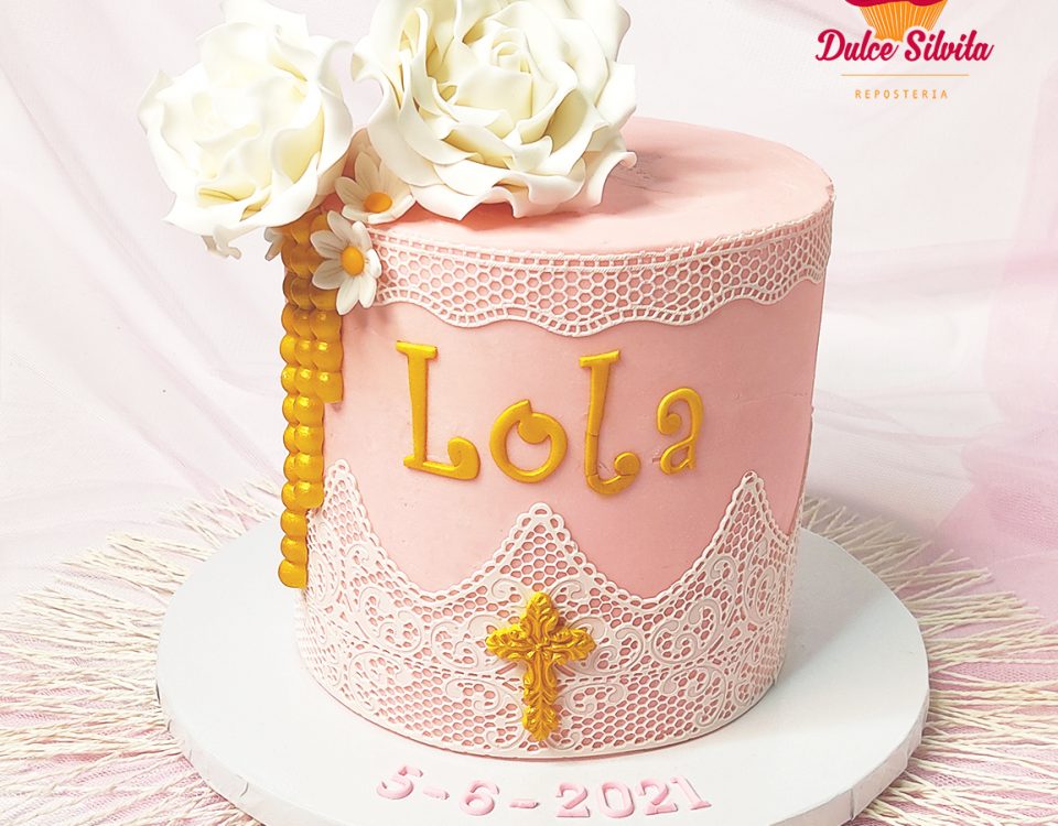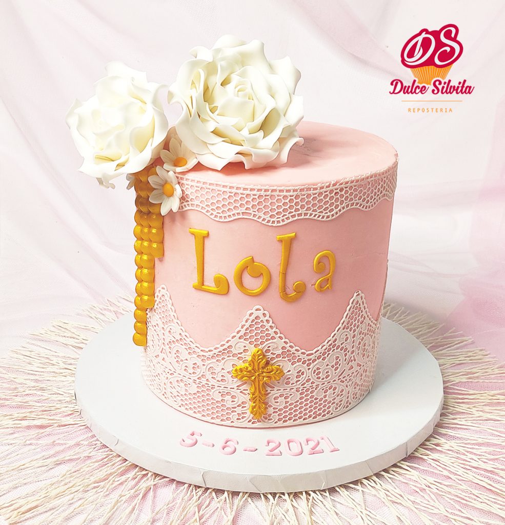 Tarta Comunión con rosas en azúcar