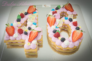 Para Carmen esta tarta con mucha fresa, arándanos y rosa!