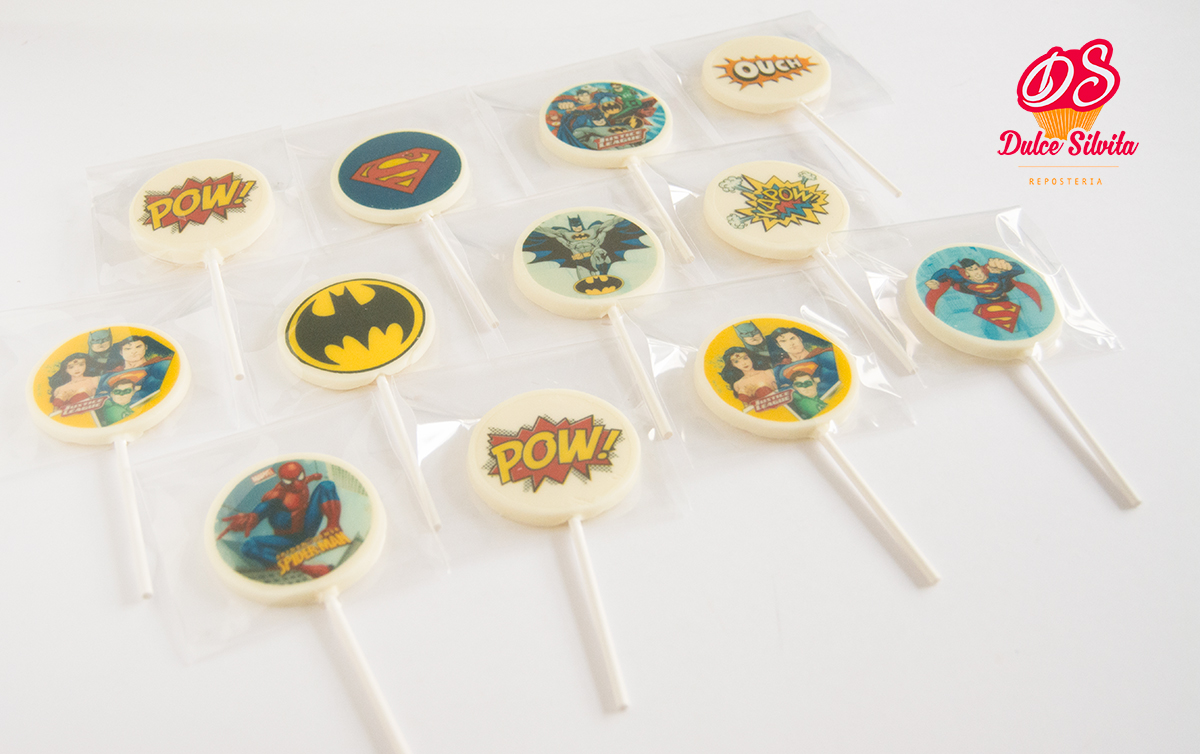 Completa tu mesa dulce acompañando a la tarta con deliciosos cupcakes y piruletas de chocolate personalizados