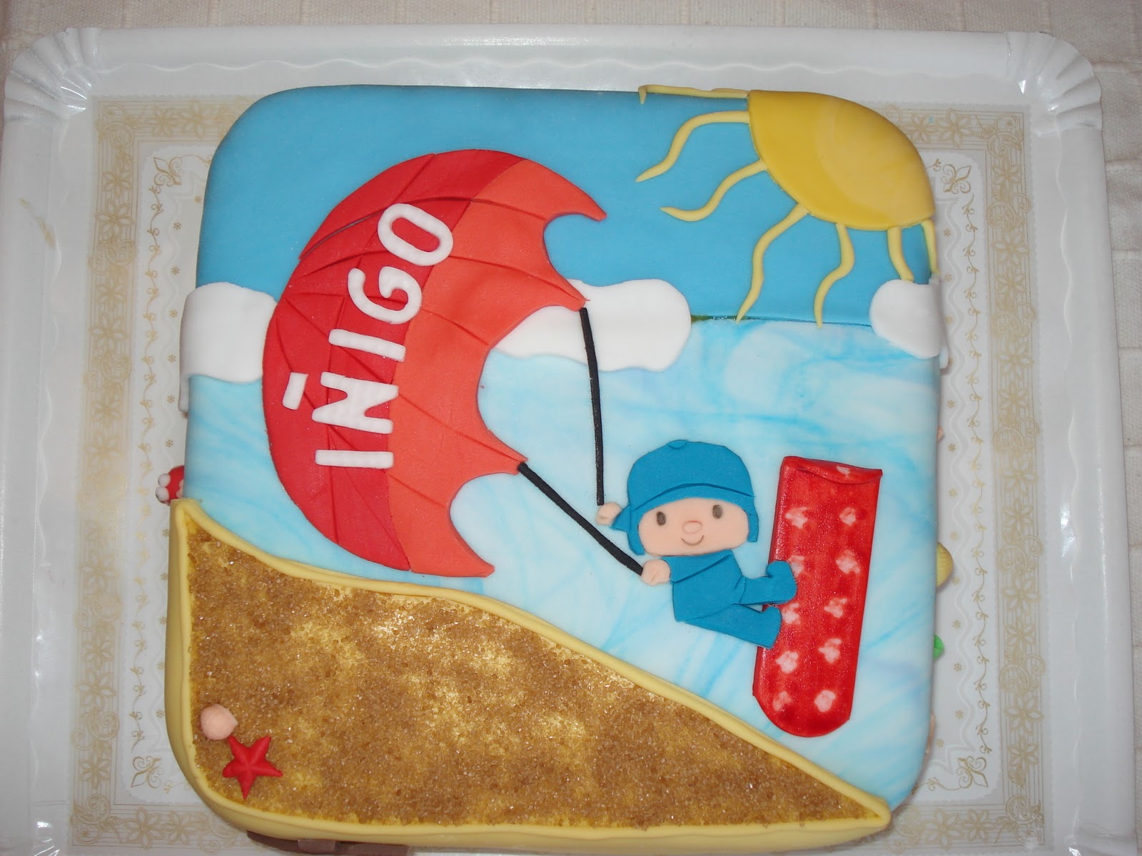 Hemos unido dos de las cosas que más le gustan a Iñigo, el kitesurf y Pocoyó, para crear su tarta de cumple…