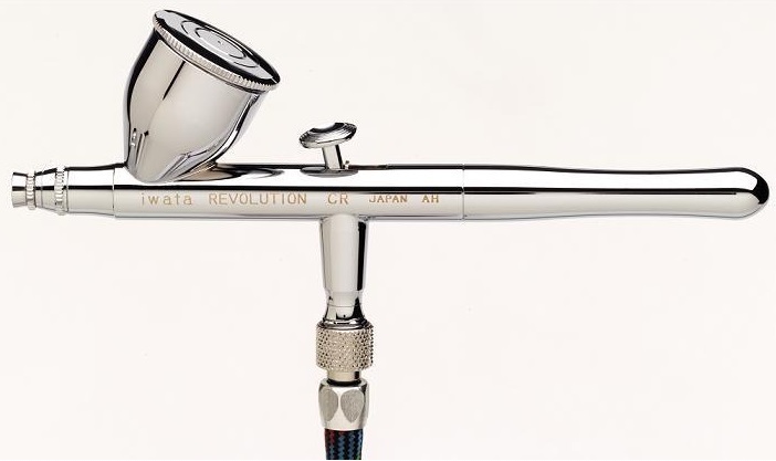 Aerógrafo de doble acción, para usos generales de pulverizado, con depósito en la parte superior de 7 ml, alimentación por gravedad.