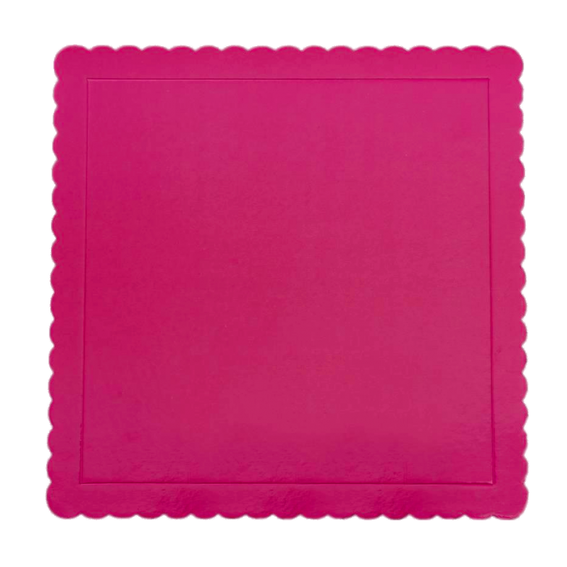 Base cuadrada extrafuerte para tarta con borde ondulado. Grosor 3 mm