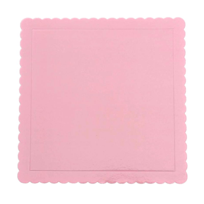 Base cuadrada extrafuerte para tarta con borde ondulado. Grosor 3 mm