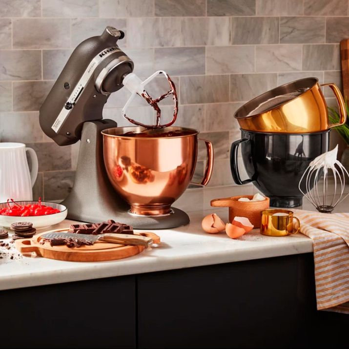 Bol de acero inoxidable con exterior de color cobre, de 4,8 litros de capacidad, de KitchenAid.