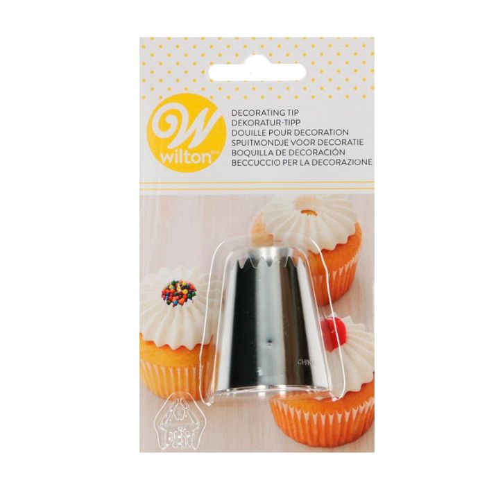 Boquilla metálica de Wilton, para realizar un diseño circular con un borde estriado y un centro abierto (coronas, sultanas…).
