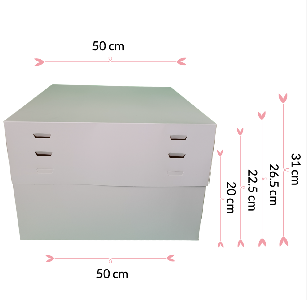 Caja grande ideal para almacenar y transportar tartas, de color blanco, cartón resistente.