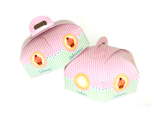 Caja hexagonal con asa para almacenar y transportar tartas.