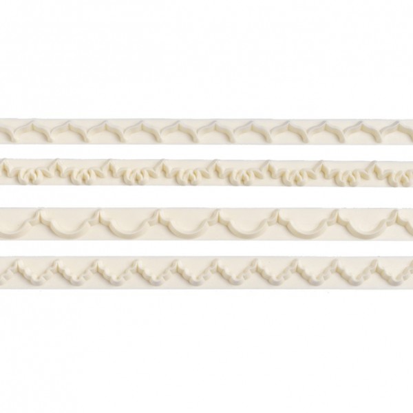 Set de 4 cortadores plásticos para cenefas de fondant.