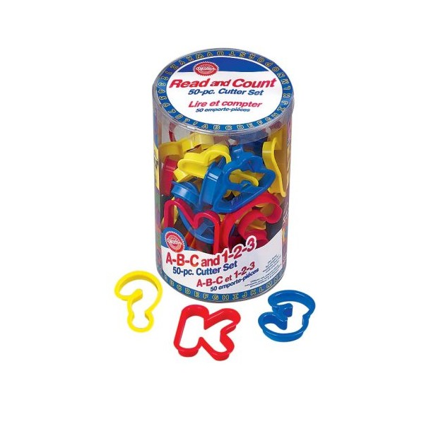 Set de 50 cortadores de plástico que incluyen todas las letras y todos los números.
