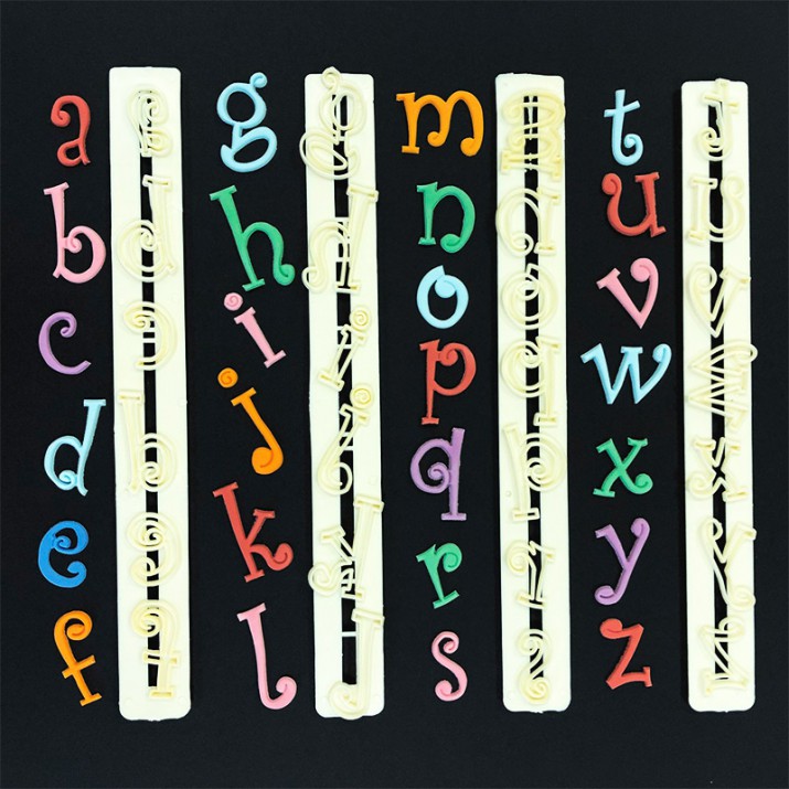 Set de 4 regletas con letras para cortar fondant o pasta de goma con el estilo Funky.