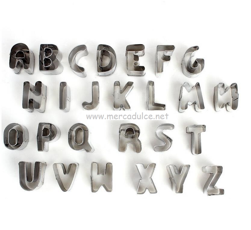 26 letras del alfabeto en mayúscula para cortar en fondant y escribir nombres o mensajes en tartas o galletas