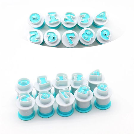 Set de 10 cortantes de números con expulsor. Ideal para cortar fondant, pasta de goma…