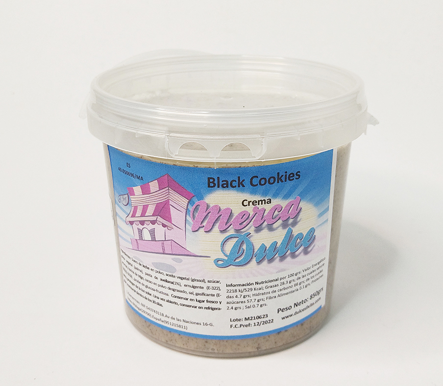 Crema sabor leche con avellanas con trozos de galleta de chocolate.
