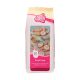 Preparación: Añada 55 ml de agua por cada 450 g de mezcla tamizada para obtener un glaseado real de consistencia dura. Mezcle el glaseado durante unos 7-10 minutos a baja velocidad hasta obtener un glaseado blanco y duro. El glaseado está listo cuando es de color blanco brillante, ha perdido su brillo y se pueden sacar picos que no se caen. Si utiliza una batidora de mano, tenga cuidado de que no se atasque.