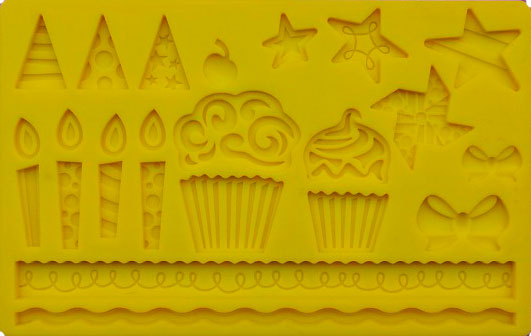 Molde de silicona de gran calidad y atención al detalle, ideal para realizar figuras de cumpleaños: velas, cupcakes, lazos, estrellas, banderines, etc.