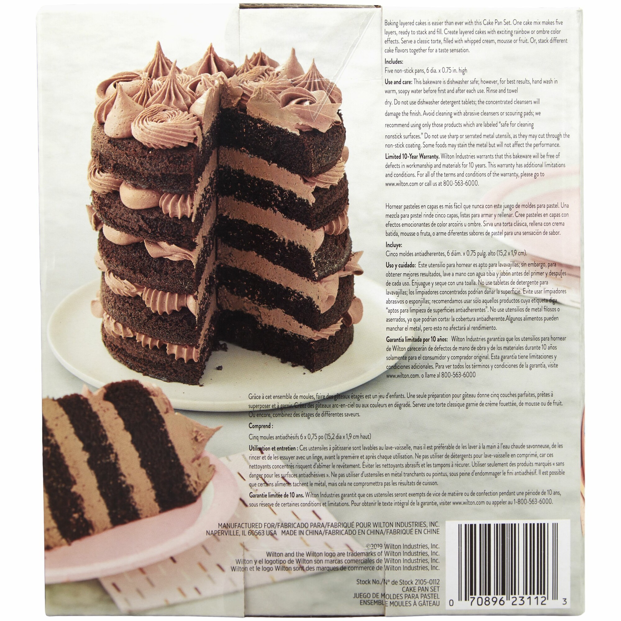 Set de 5 moldes redondos para hornear 5 capas de bizcocho. Marca Wilton