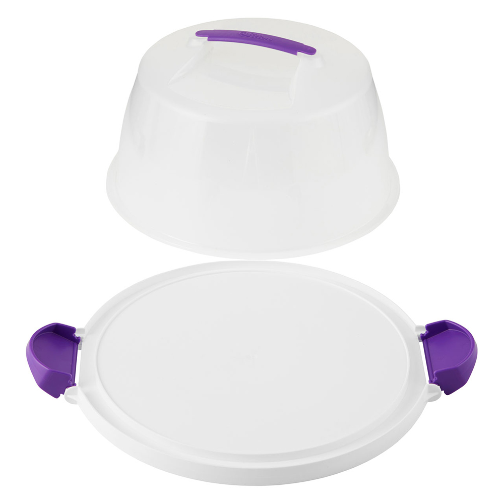 Transportador redondo para llevar o guardar tartas o cupcakes con base reversible.