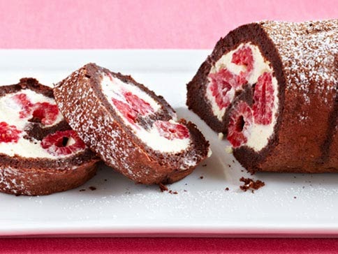 Cuando ya esté frío abre el bizcocho, extiende la nata vegetal montada y distribuye las frambuesas. Enrrolla el bizcocho sobre sí mismo y llevalo a la nevera hasta el momento de servir.