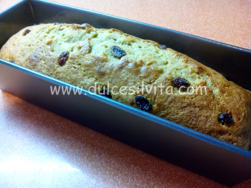 - Vertemos la masa en un molde de bizcocho o de plum cake ya rociado con spray vegetal. La horneamos durante 45-50 minutos (pínchalo con un palillo de dientes en el centro del bizcocho y si sale limpio, está hecho).