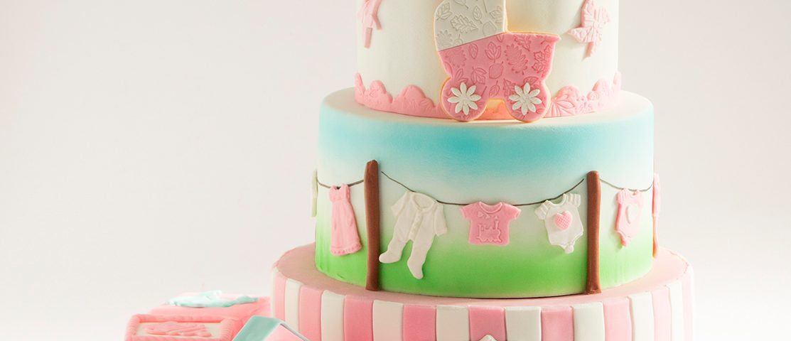 Fue un placer elaborar esta hermosa tarta de tres pisos con tiernos detalles para el bautizo de Valentina.