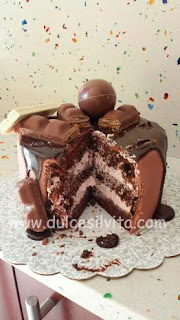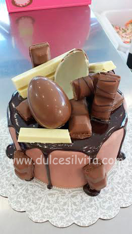 Huevos Kinder, Kinder Bueno, y varios chocolate más decoraron esta tarta tan especial.