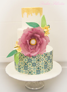 Hermosa tarta para celebrar una boda. Los colores y las texturas pueden ser los protagonistas en un momento tan especial. La flor central está elaborada en Wafer Paper acompañada por flores de relleno en pasta de goma.