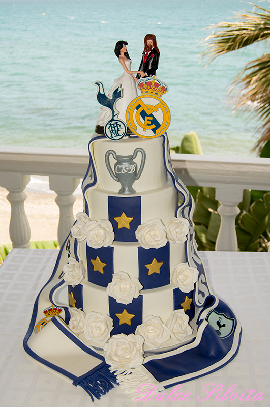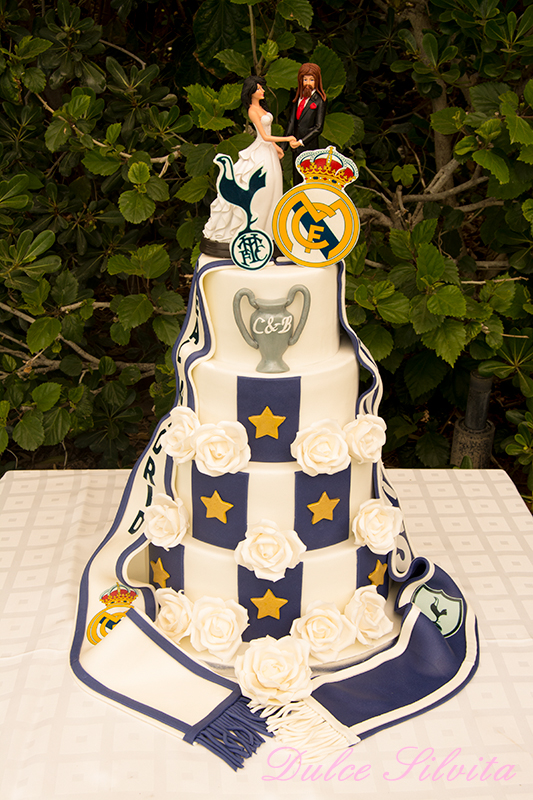 Desde Inglaterra nos escribió Carmen para pedirnos su Tarta de Boda. La temática era clara ya que ambos son muy fans del futbol, pero de distintos equipos 😉