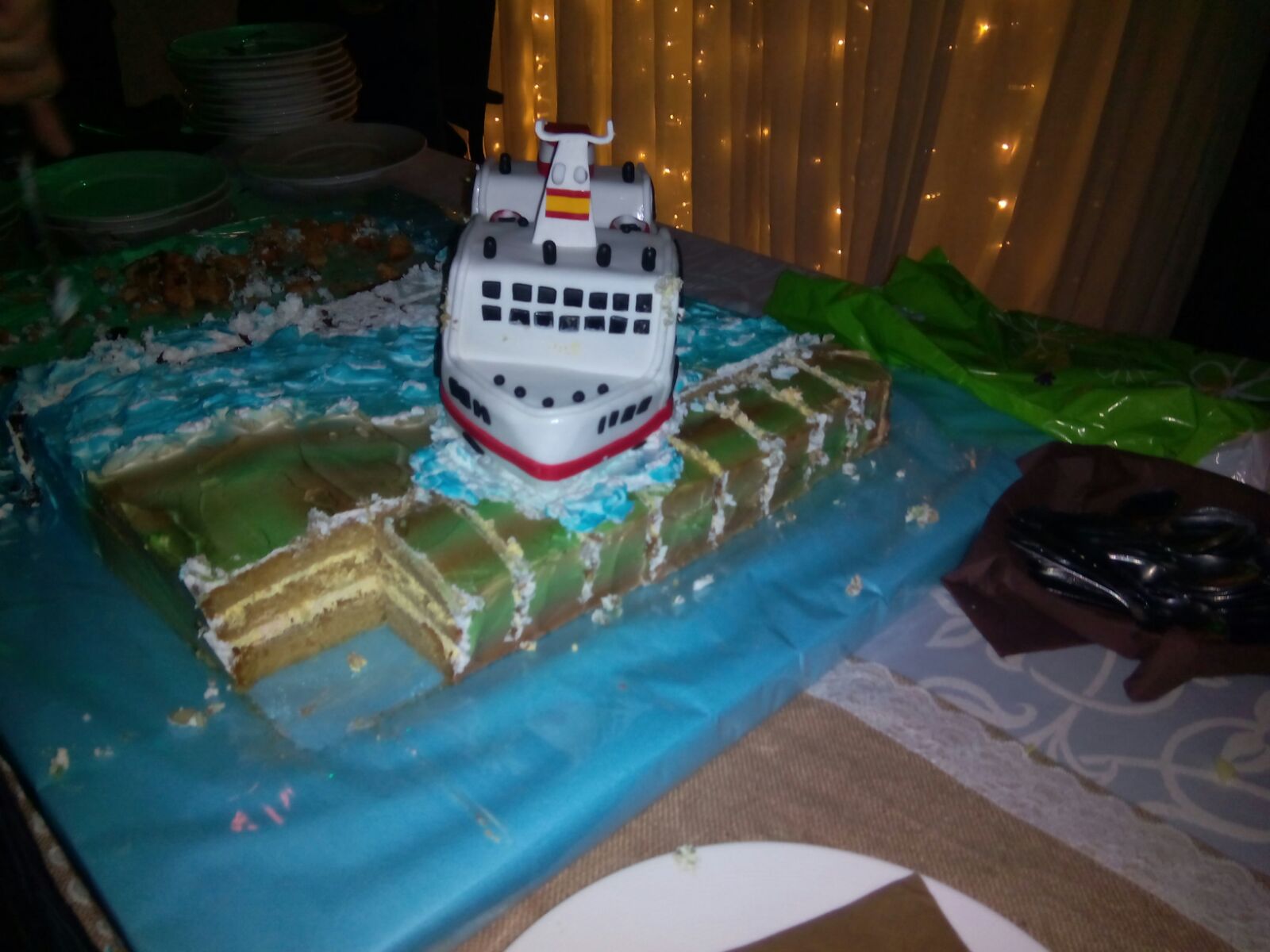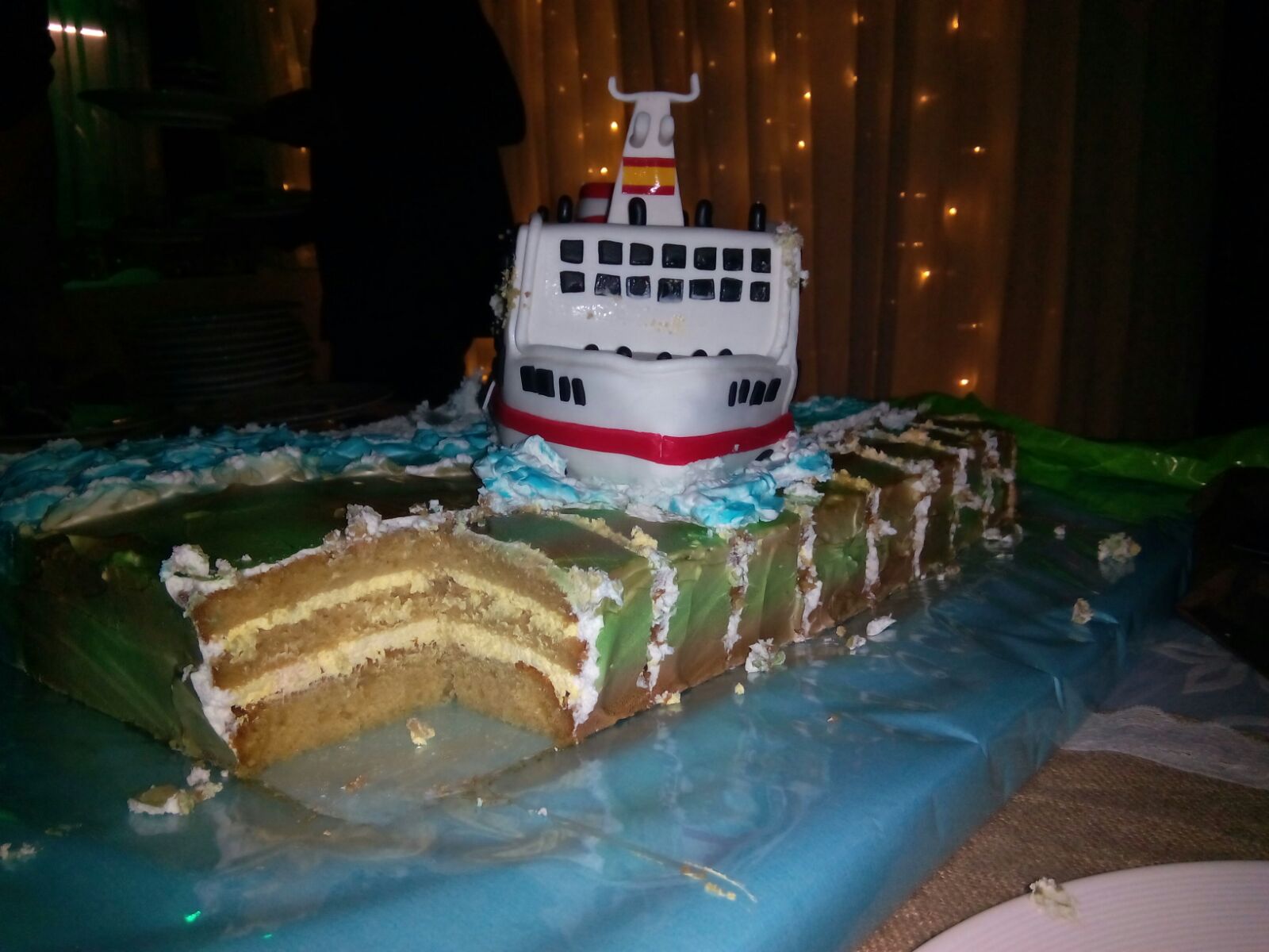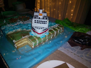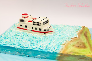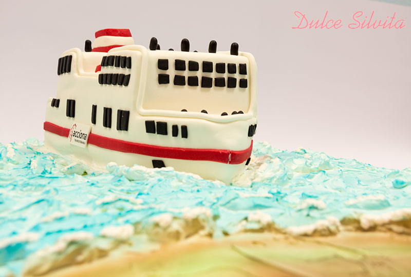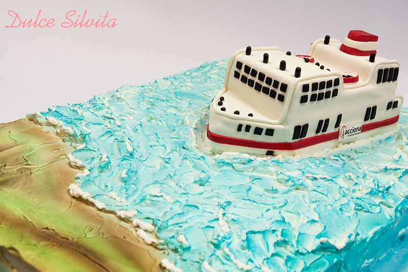 Una tarta muy grande para festejar una boda muy especial, tanto la base como el barco eran 100% comestibles.