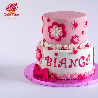 Para Bianca en su cumpleaños hemos preparado esta hermosa tarta de Kitty con delicioso bizcocho de vainilla relleno de Nutella.
