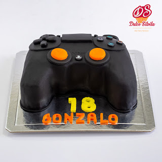 Para los 18 años de Gonzalo una tarta con forma de Mando de Play Station de chocolate y frambuesa!