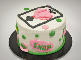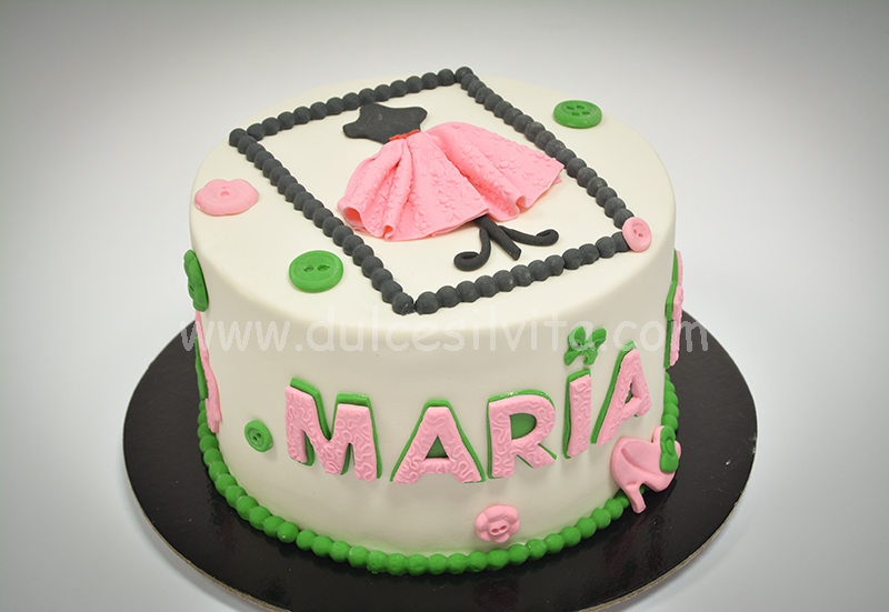 María vino muy segura del diseño que quería para su tarta: Moda. Elegimos colores, sabores y con esta tarta festejó su cumple.