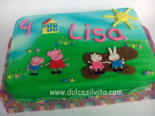 A Lisa le encanta Peppa Pig y su mami le organizó una fiesta temática, la tarta no podía ser otra que la que le hicimos con Peppa, su hermanito George, Suzie Sheep y Rebeca Rabbit.